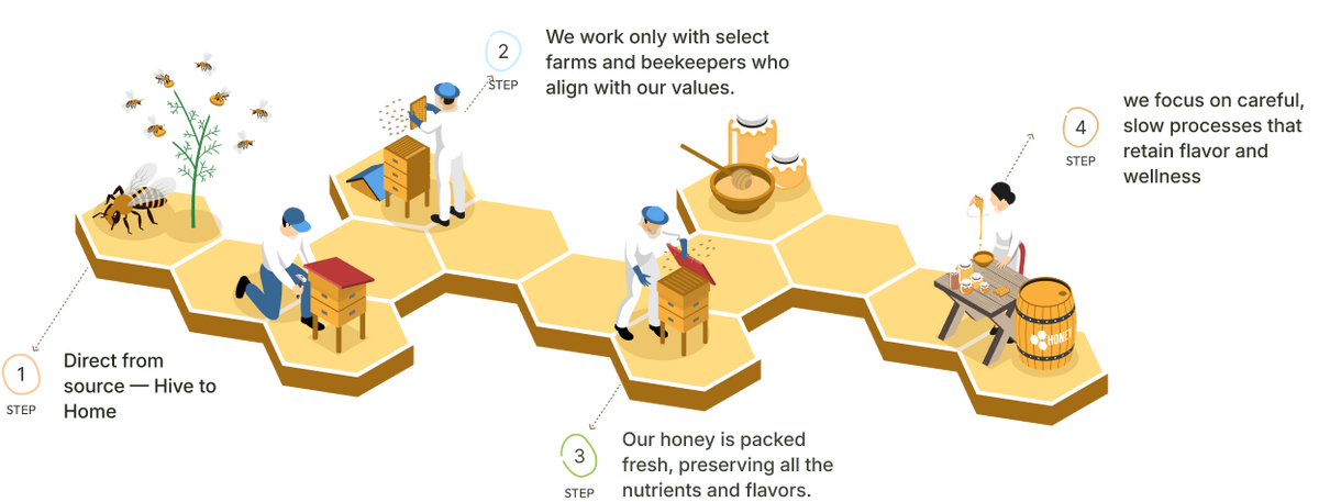 Rooted in tradition, not just honey — we deliver you nature’s finest treasures. From raw honey to premium dry fruits and cold-pressed oils, everything is sourced directly from trusted farms and crafted the ethical way — pure, powerful, and close to nature.